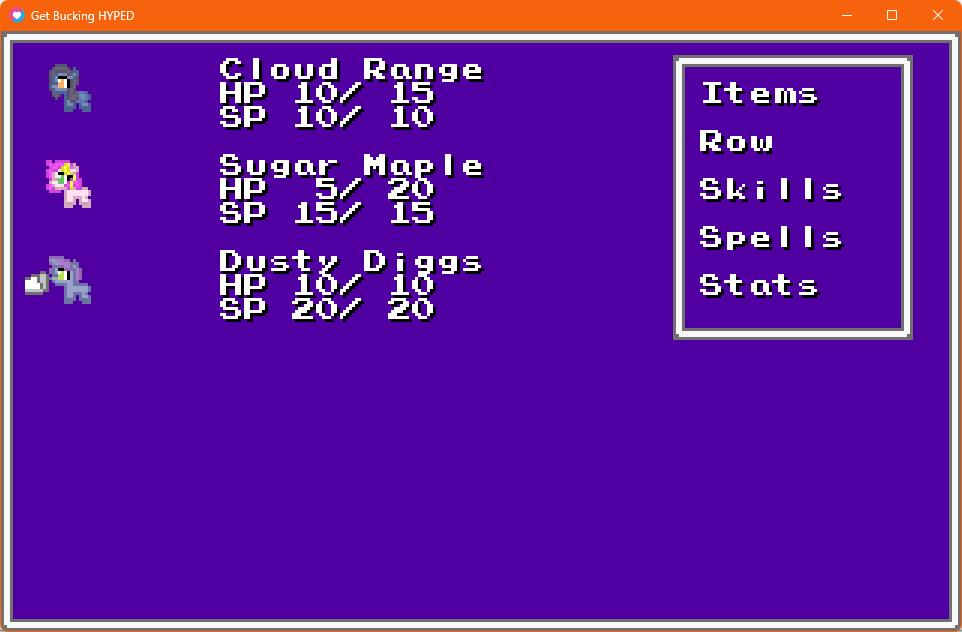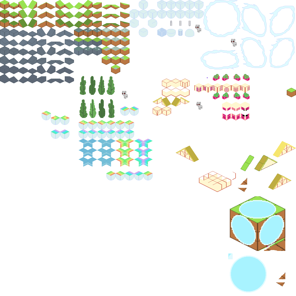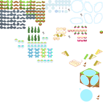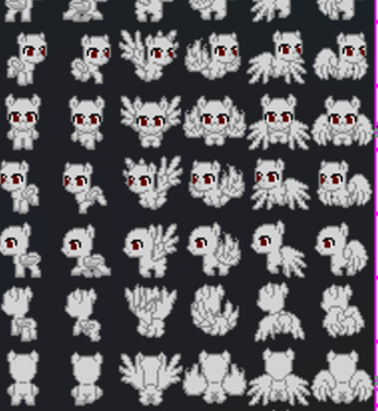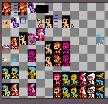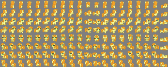 There's a few bonuses thrown in if I thought they were pony-related. Mostly my FF6 Megan sprite (she can ride on the G1 pony base!) and the beginnings of my my isometric cloudsdale and town tilesheet that works very well with the eight-way 32x32 sprites.